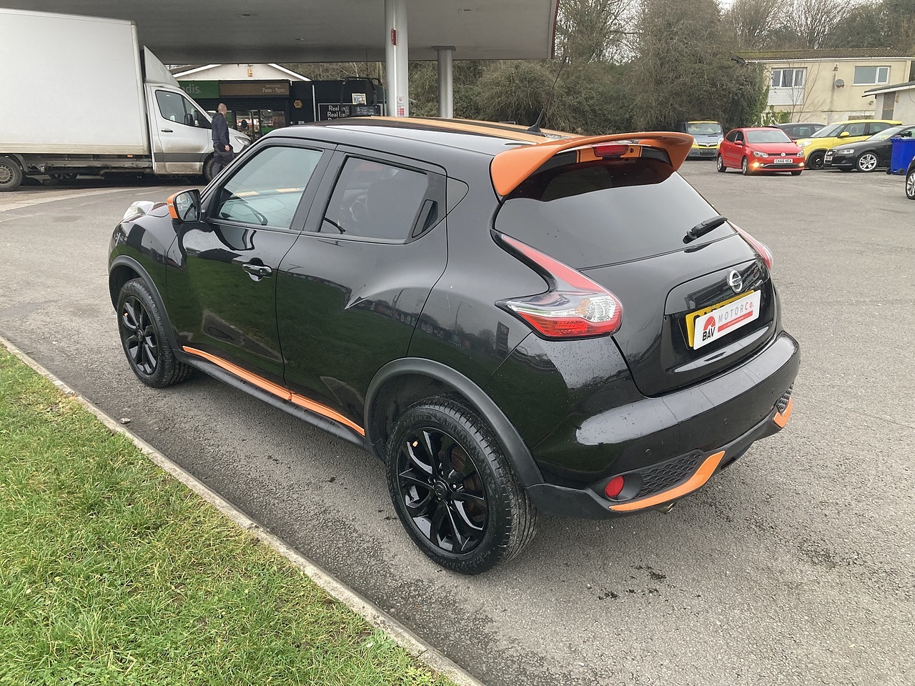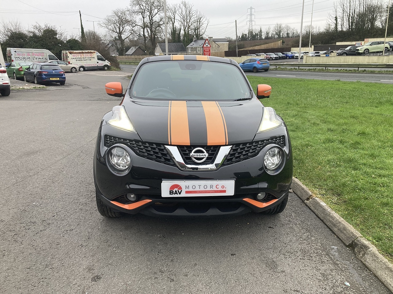 Finished in Metallic Black with Gloss Black Alloy Wheels and Orange Stripes